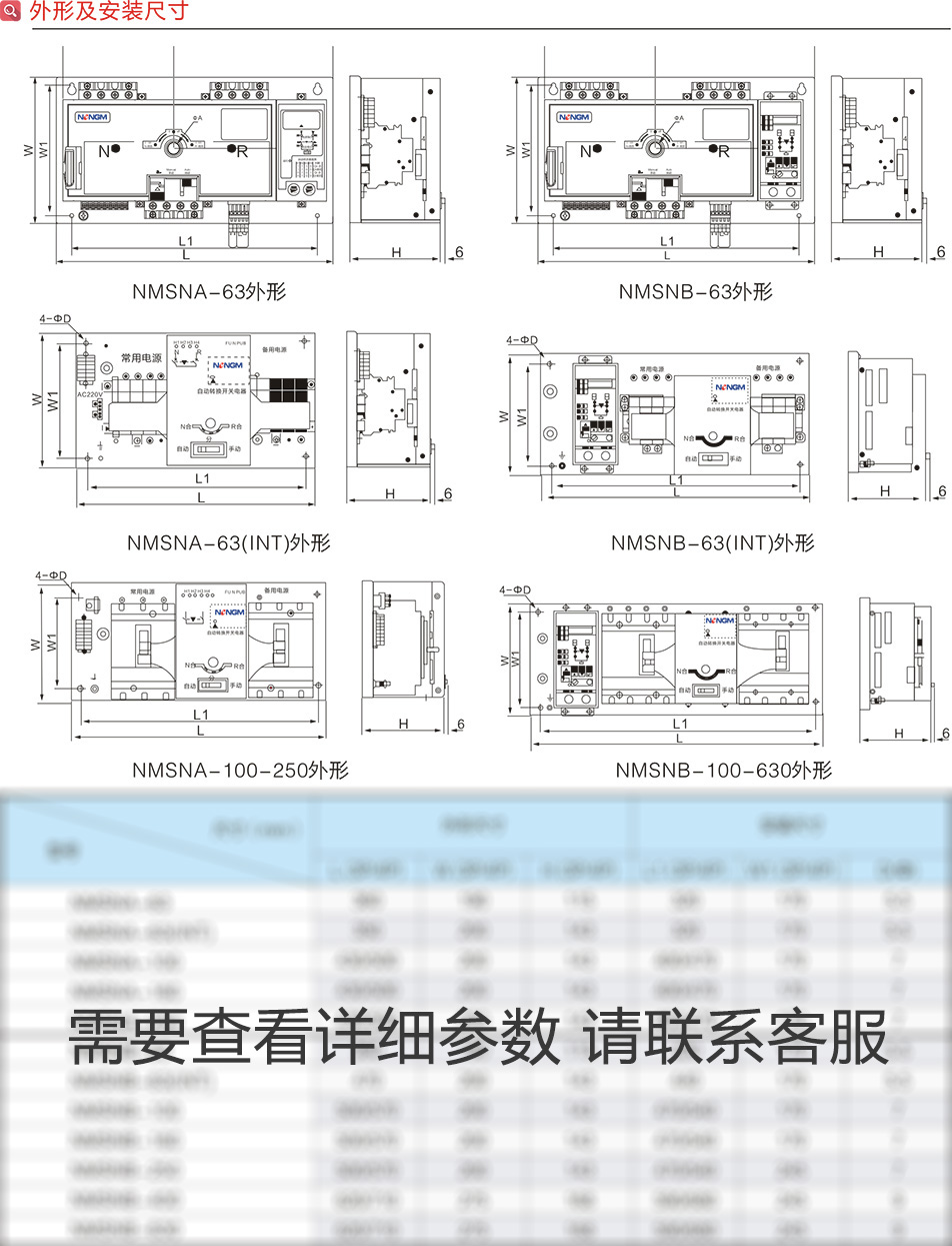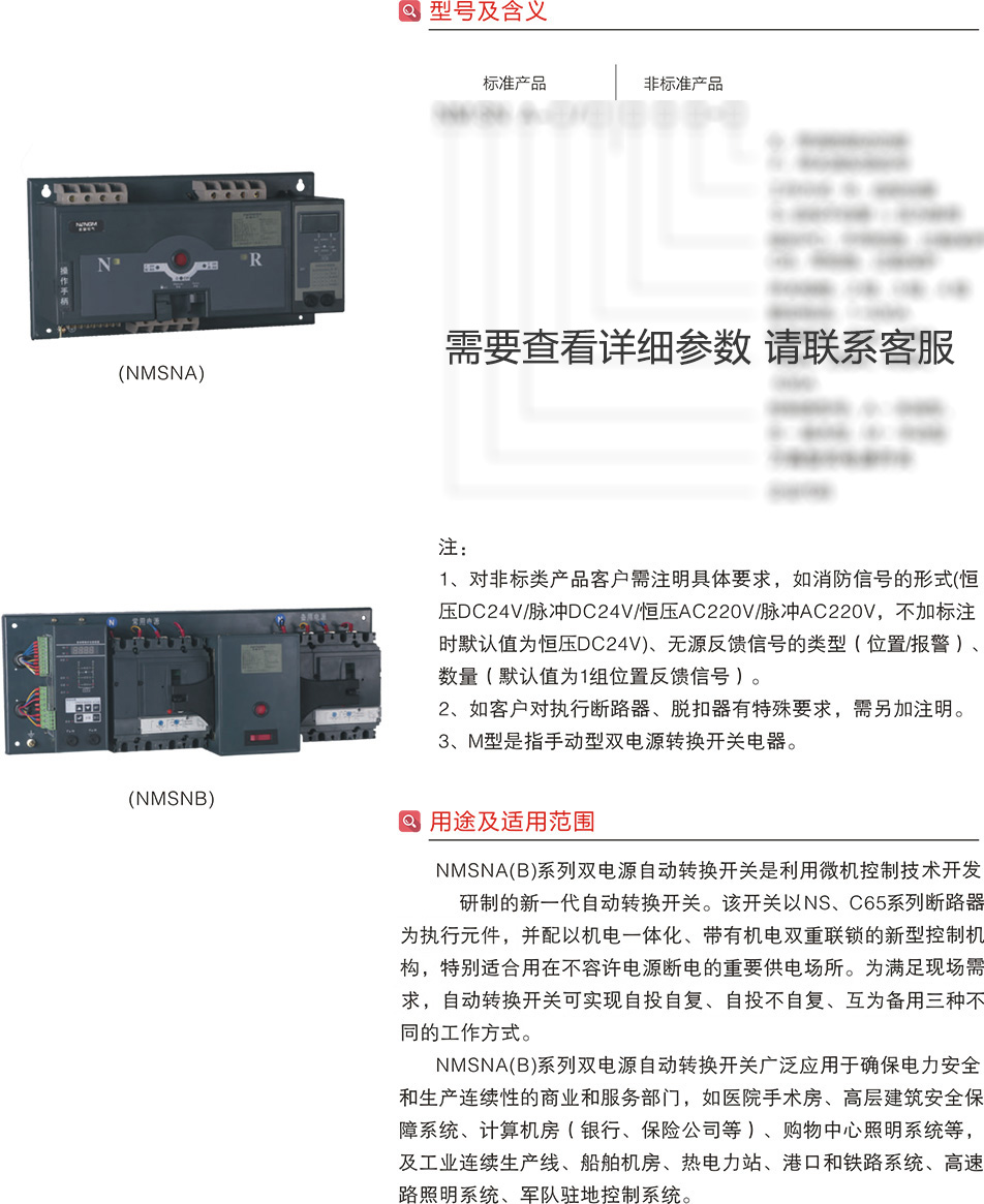 NMSNA(B)-63~630A萬高型雙電源自動轉換開關PC級/CB級