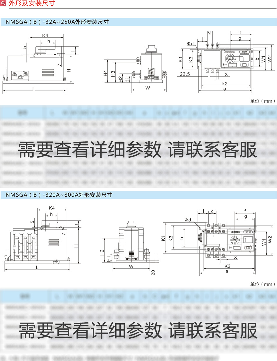 NMSGA(B)-100~800A萬高型雙電源自動轉換開關PC級