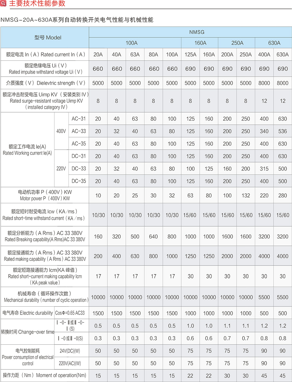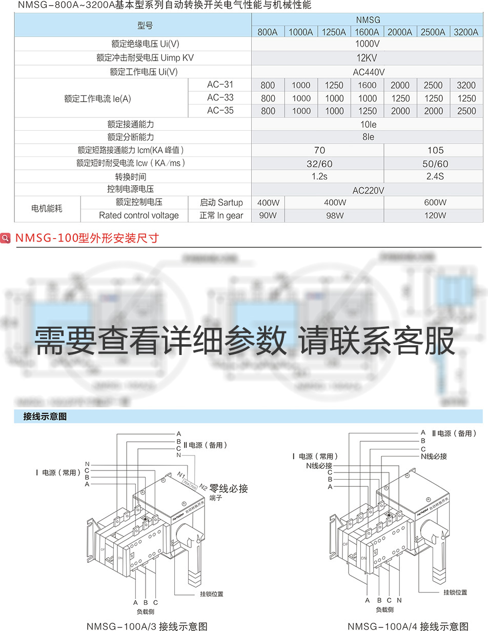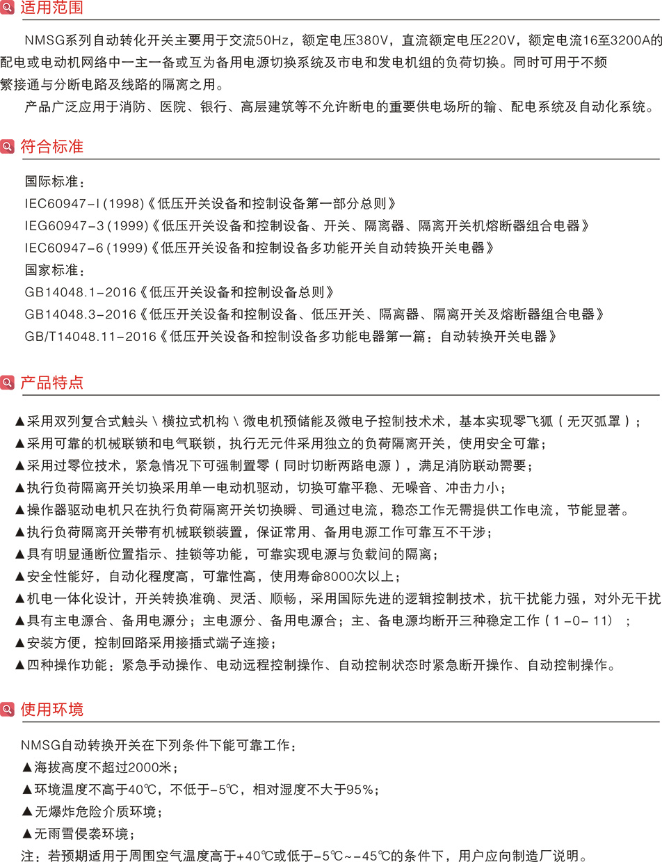 NMSG-100~4000A隔離型雙電源自動轉換開關PC級